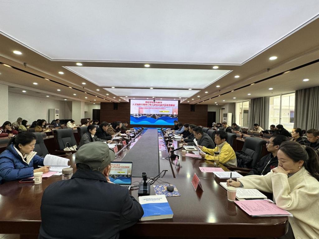 2025年3月20日,学校在九思楼八楼会议室召开关于教育部审核评估三个达成情况文件解读专题会议。副校长王蜀黔出席会议并讲话,各专业学院院长、副院长、教研室主任,教务处教学管理科科长及秘书、评建办秘书等参与评建工作人员参会。会议由教务处博士金贻主持,校审核评估专家阮朝辉主讲。