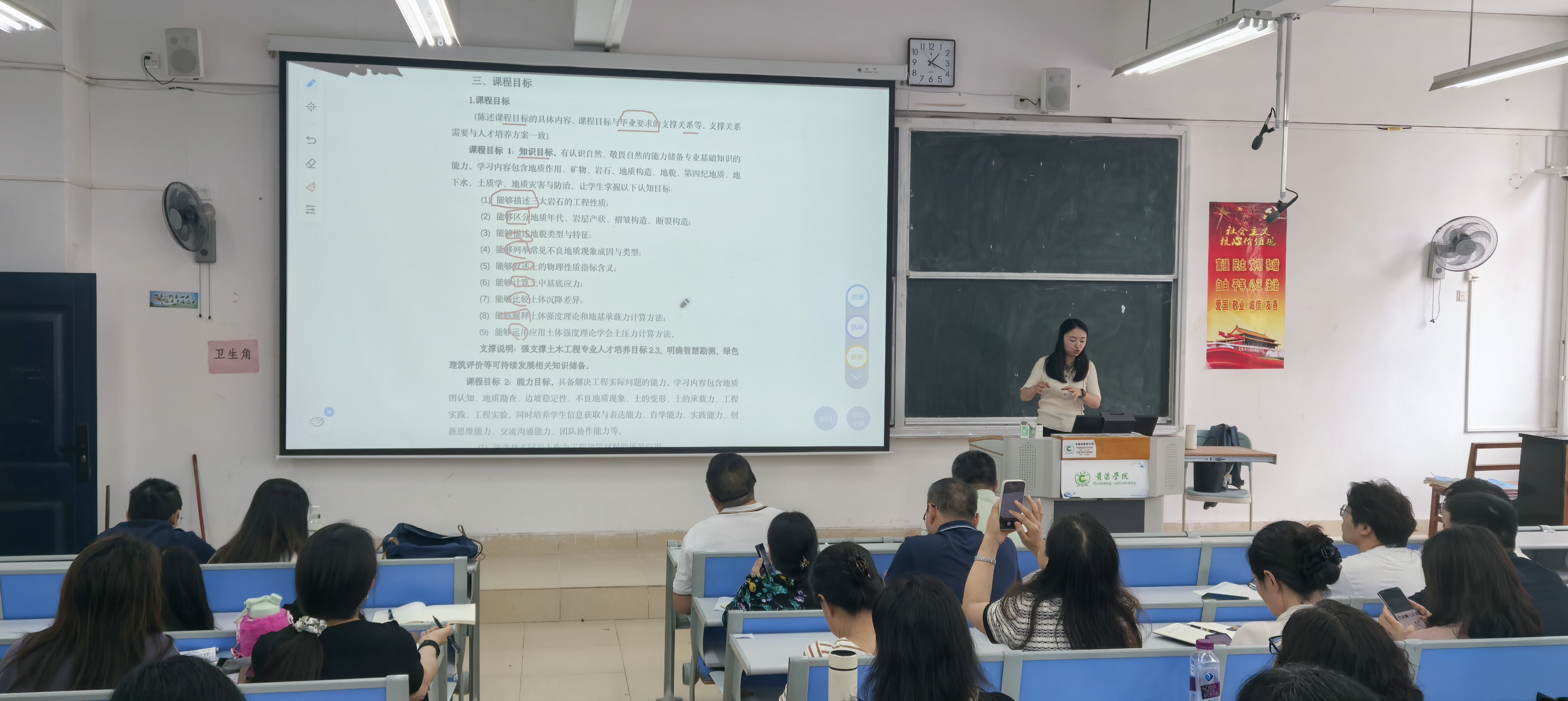 为高质量迎接本科教育教学审核评估,切实提升课程建设规范性,2025年6月24日,建筑科学与工程学院在三教3199教室举办教学大纲撰写与课程思政建设专题培训会。建工学院副院长唐薇主讲,建筑科学与工程学院、计算机科学学院、食品科学与工程学院等三个学院的公共及专业课程教师参会。唐薇副院长围绕教育部《高等学校课程思政建设指导纲要》以及bat365在线中国登录入口关于课程目标达成度、教学大纲及课程思政建设的文件要求,以自己承担的课程《工程地质与土力学》为例,详细讲解教学大纲撰写要点,课程目标达成度评价报告撰写时应注意事项,强调人才培养目标要与毕业要求对接,并分享课程思政融入方法,如结合学科知识融入家国情怀、职业素养等思政元素。