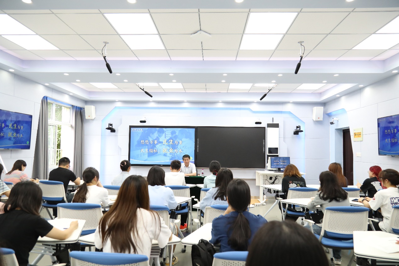 课上,吕保平围绕国家大力实施就业优先政策这个大背景,向同学们讲解当前就业形势、就业压力、就业渠道和就业政策,并根据英语专业特点,结合学校近五年毕业生就业情况及2024届毕业生当前就业情况,为同学们深入分析就业前景。