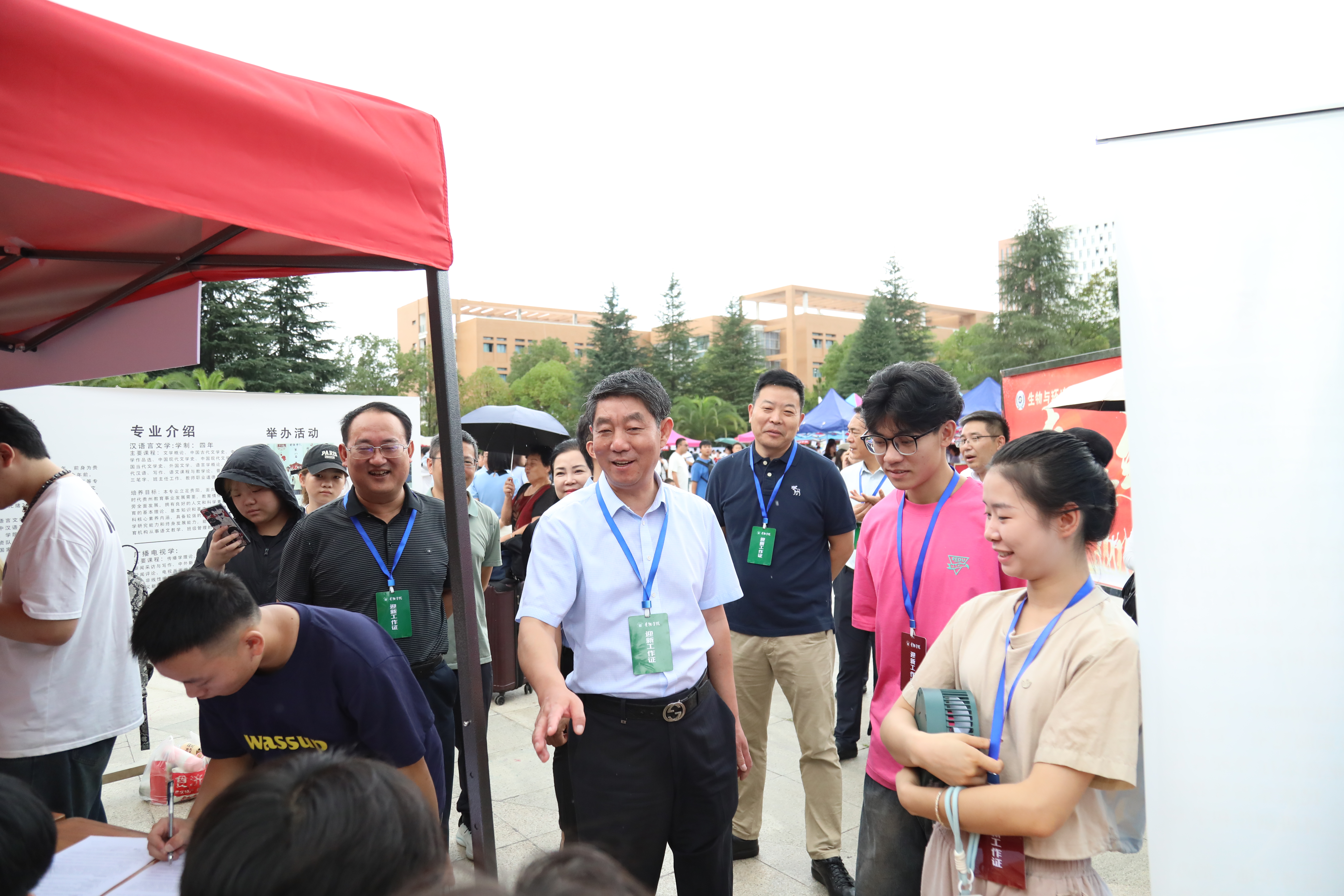 学校党委书记吕保平,校领导赵福菓、马力、王蜀黔、张加万、刘清海、郭丽到各迎新点检查指导迎新工作,仔细查看各专业学院报到流程、咨询服务、志愿者服务等各个环节的运行情况,亲切看望新生,慰问师生员工和志愿者。