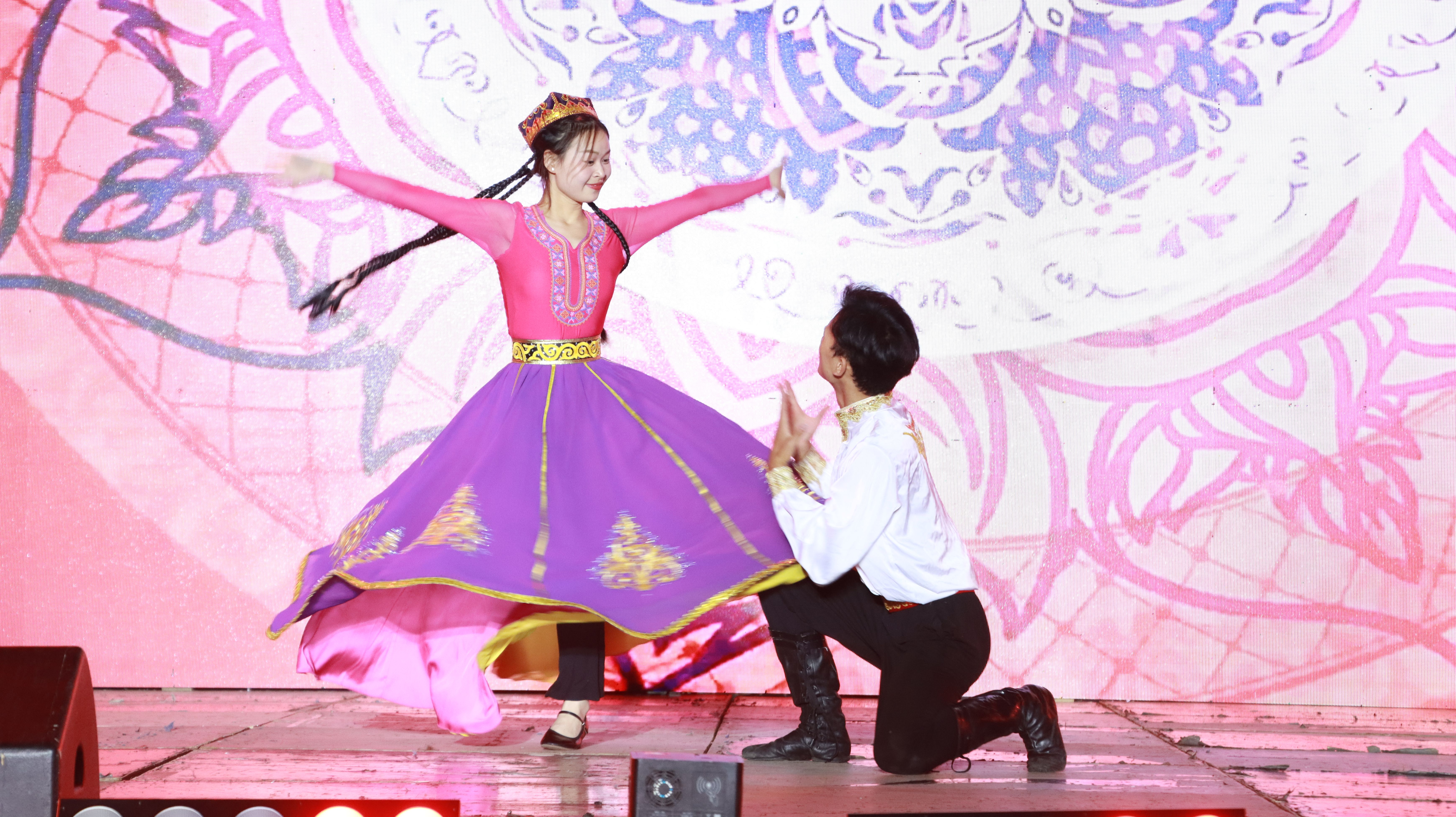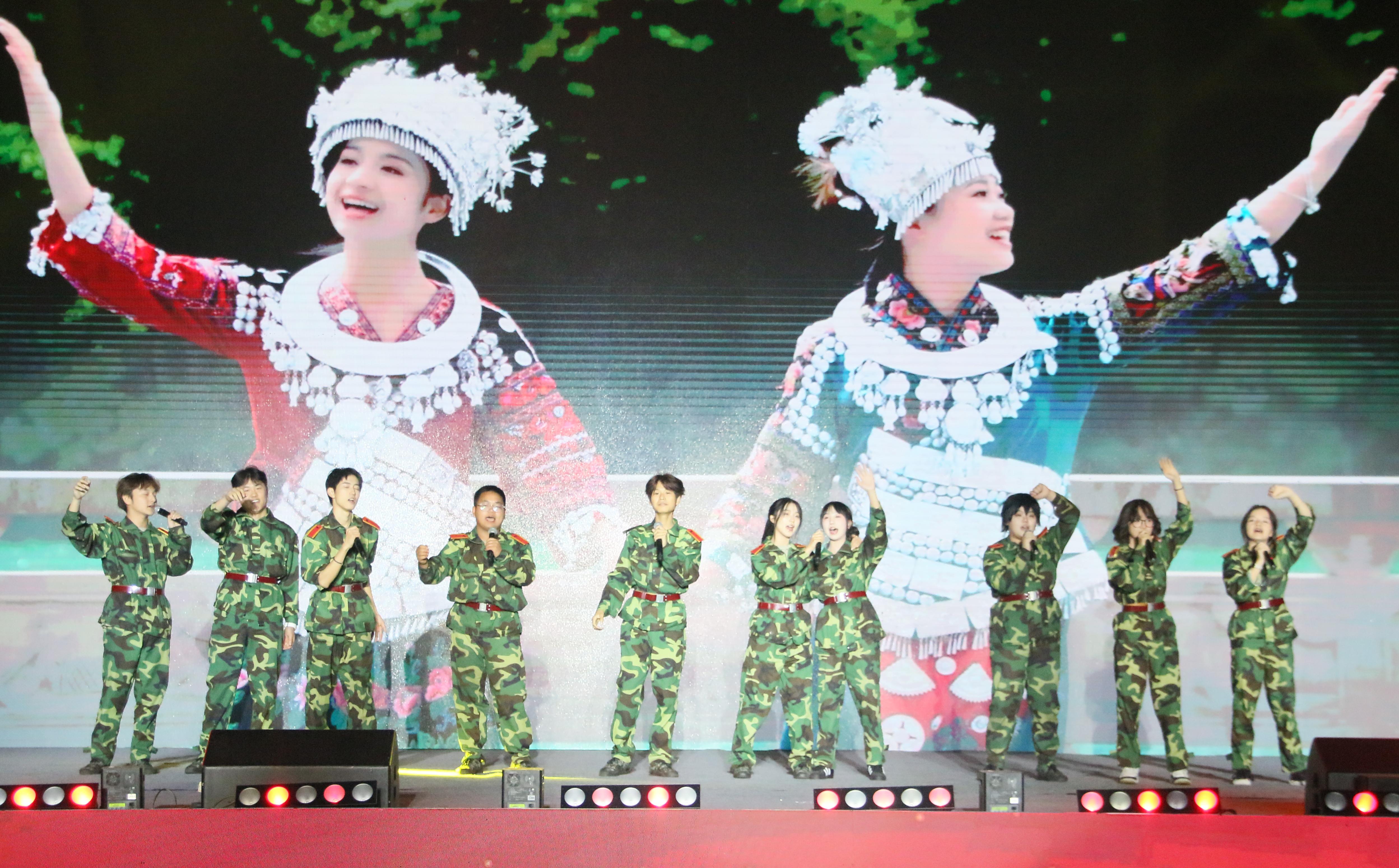 舞蹈《掀起你的盖头来》、歌曲《共筑中国梦》、管乐《我的祖国》《党啊,亲爱的妈妈》等节目展现了全国各族人民在中国这片广袤的土地上绘就的波澜壮阔的壮美画卷,向在场观众充分展现新时代人民群众新面貌新气象,凝聚起广大学生坚定不移听党话、矢志不渝跟党走、团结一心开拓进取的强大合力。