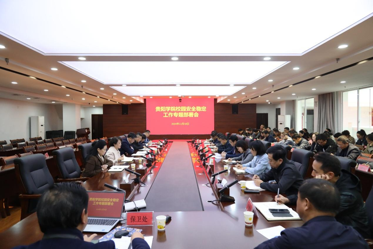 11月18日上午,学校在九思楼八楼会议室召开安全稳定工作专题部署会。会议传达了上级相关指示要求,全面分析研判学校当前安全稳定形势,研究部署近期学校安全稳定工作,持续推进平安校园建设工作,确保校园安全稳定。校党委书记吕保平主持并讲话,校党委副书记、校长黄营,校领导马力、王蜀黔、刘清海、郭丽出席会议,各校直部门负责人、专业学院党政负责人参加会议。