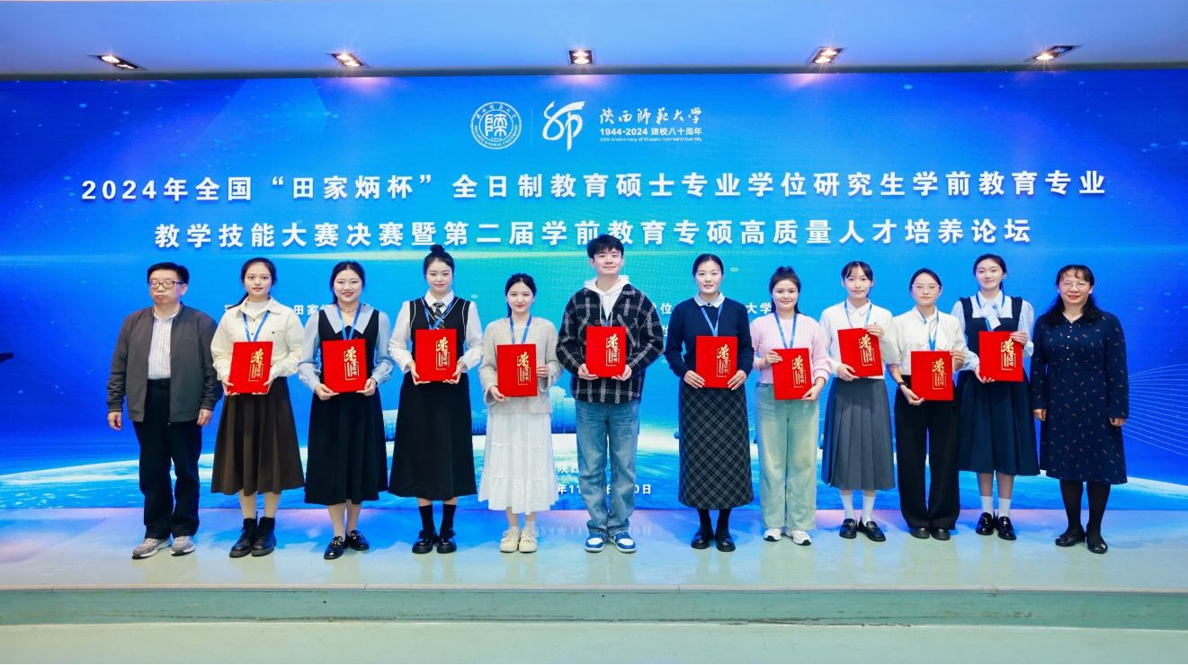 2024年11月9日-10日,全国“田家炳杯”全日制教育硕士专业学位研究生学前教育专业教学技能大赛决赛在陕西师范大学落下帷幕。经过激烈角逐,bat365官网教育科学学院学前教育专业五名研究生凭借扎实的专业知识、过硬的教学技能在比赛中脱颖而出,共获一等奖2项、三等奖3项,教育科学学院2名教师获得优秀指导教师奖。