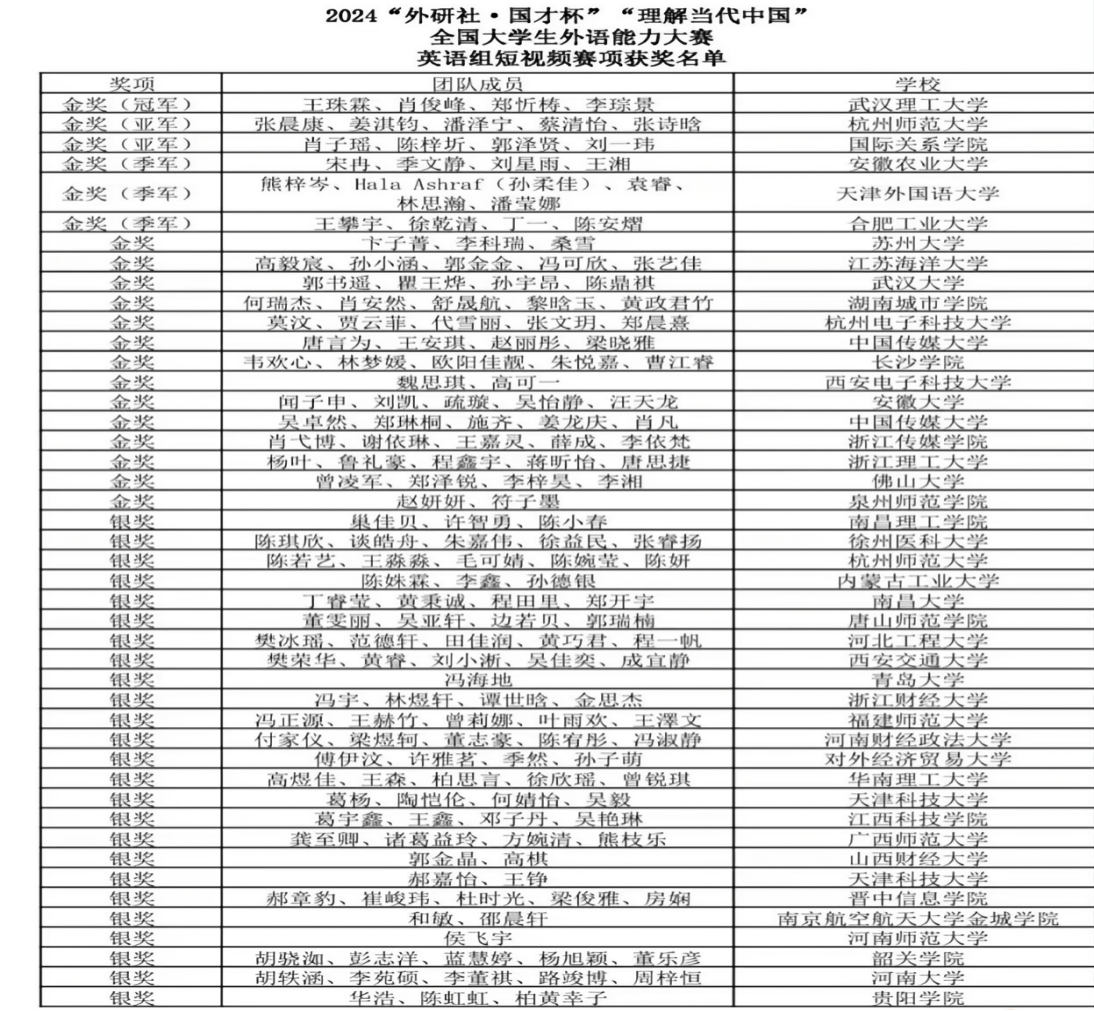 本次获奖,不仅是bat365官网学子在专业学习和实践中勇于探索、追求卓越的体现,更是学校在教学实践与创新领域取得的又一重要成果。学校外国语学院将以此为契机,进一步深化教育教学改革,为培养适应新时代需求的高素质外语人才而努力,推动学院在学科建设、人才培养等方面迈向新的台阶,在更广阔的平台上展现bat365在线中国登录入口外国语学院的风采与实力。
