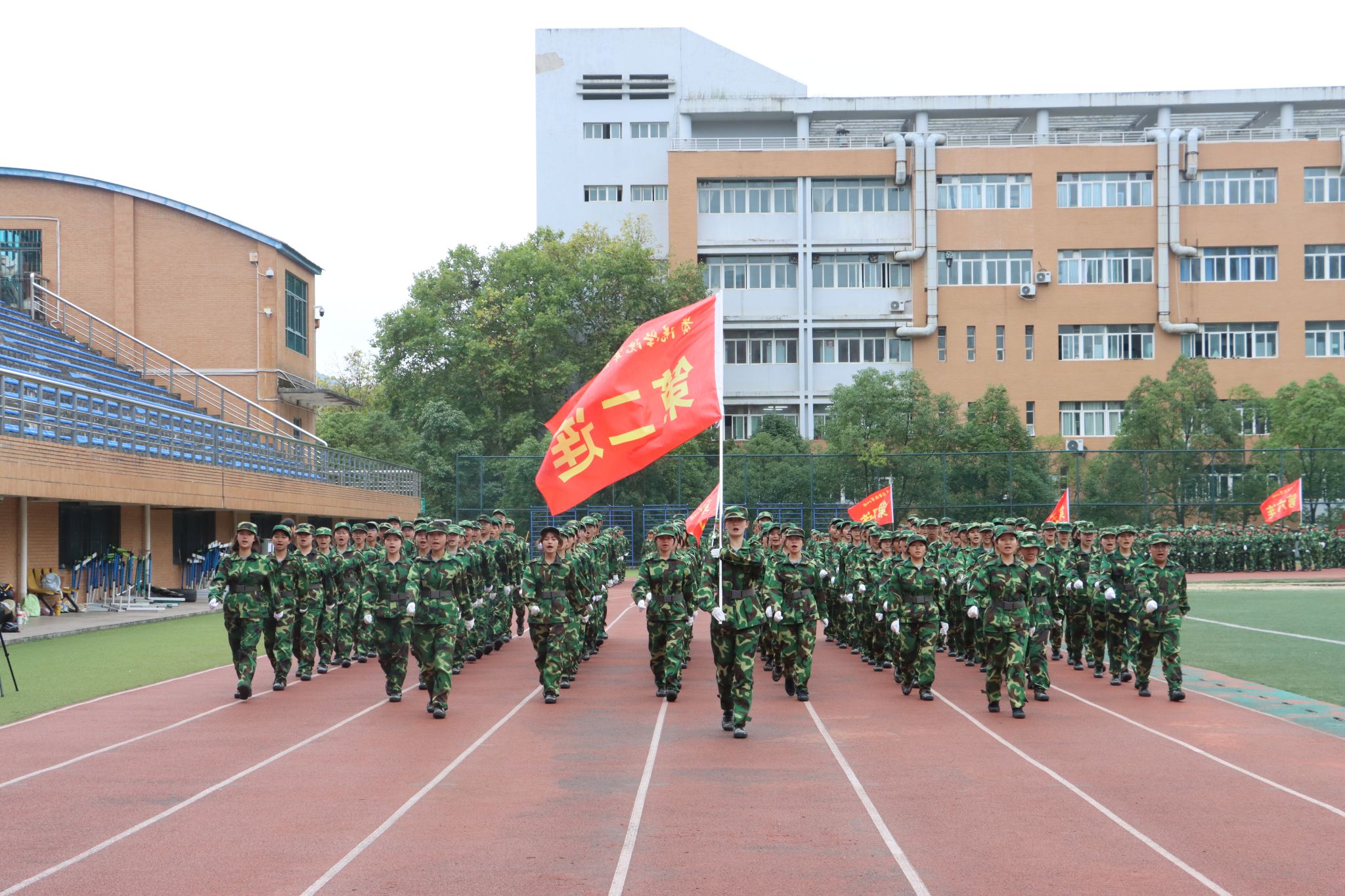 黄营指出,军训的结束不是终点,而是新征程的起点,希望同学们将三种精神融入未来的学习成长。一是传承“令行禁止”的纪律精神。无论是课堂学习、实验研究、实习实训,还是各类文体活动,都要“严于律己”。唯有将规则内化于心,方能行稳致远。二是厚植“家国天下”的担当精神。希望同学们以“强国有我”的姿态,将个人理想融入国家需求、学校目标,在科技创新、产业服务、文化传承等领域勇担使命。三是永葆“百折不挠”的奋斗精神。“青春由磨砺而出彩,人生因奋斗而升华。”这种“不放弃、不服输”的劲头,正是破解学业难题、提升就业能力、应对人生挑战的“制胜法宝”。愿同学们带着军训赋予的坚韧、团结与爱国情怀,在“博新雅信”校训的指引下,成长为“德才兼备、全面发展”的时代新人!