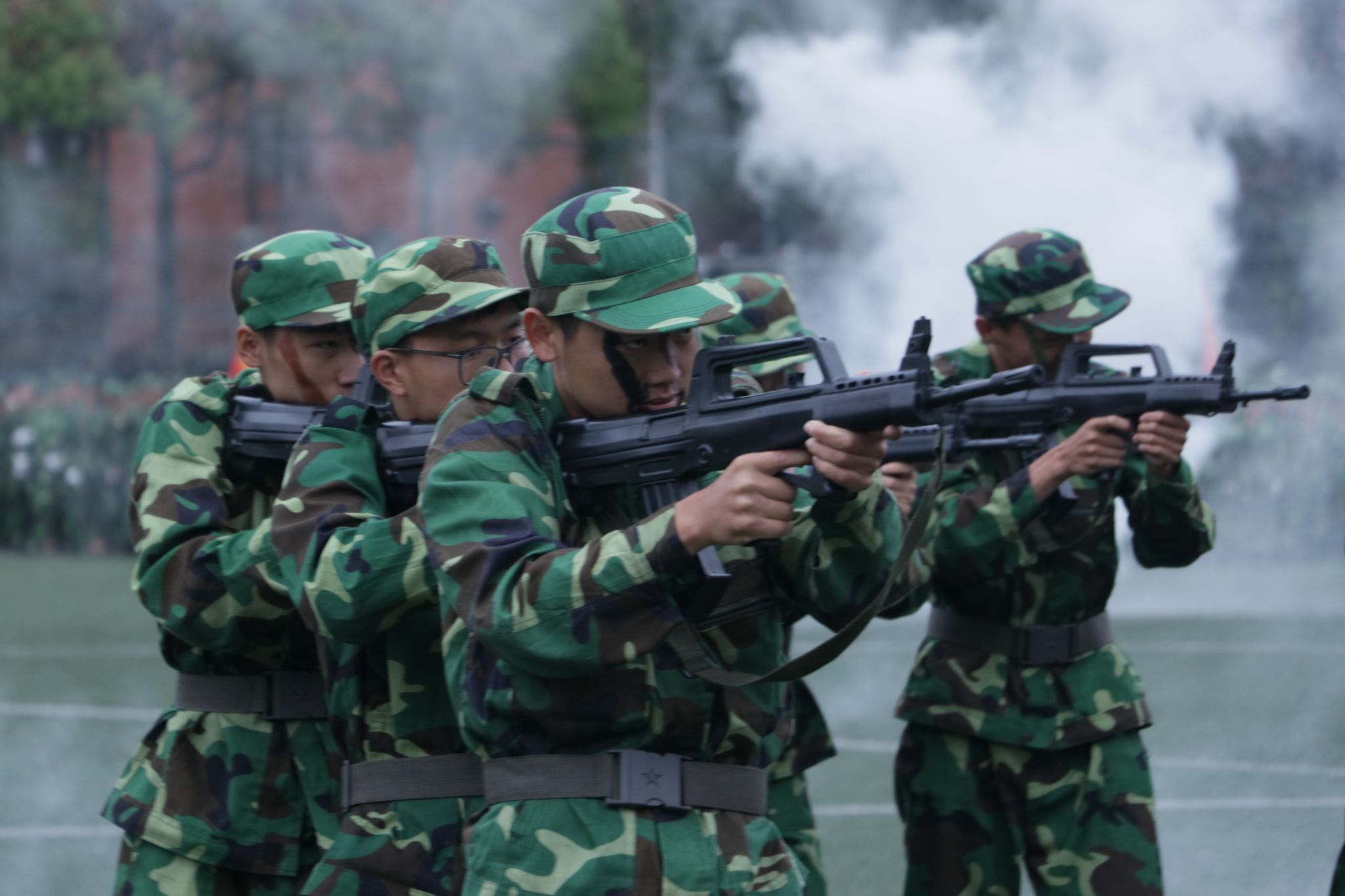 军训总结表彰大会在庄严的国歌中拉开序幕。分列式中,迷彩方阵步伐铿锵、口号嘹亮,同学们用挺拔的身姿书写下青春的誓言。在汇报表演环节,刚劲的军体拳、飒爽的匕首操、逼真的战术演练等特色项目轮番上演,不仅展现了同学们过硬的军事素养,更彰显了团结协作的集体精神,掌声与喝彩此起彼伏。