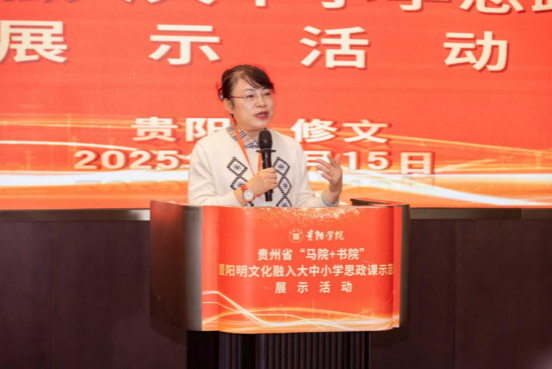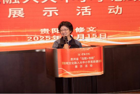 西南大学马克思主义学院吴艳东教授、北京市西城区教育学院政治教研员蔚国娟老师、北京市西城区教育研修学院政治教研员蒋凤老师和贵阳市云岩区人贵实验小学党支部书记、校长杜鹃老师对四个学段课堂展示做了精彩的专家点评,对将阳明文化融入大中小学思政课一体化建设提出了很好的意见建议。与会者一致认为,推动阳明文化融入思政教育,需在“精准融入”“协同发力”“实践转化”上下功夫。要探索和推动“马院+书院”建设,进一步整合文化资源、创新育人载体,实现阳明文化与思政课的创造性融合,探索思政课一体化建设的创新路径,打造更多有高度、有深度、有温度的思政示范课,培育更多思政育人品牌、形成一批典型经验,为培养担当民族复兴大任的时代新人贡献智慧和力量。