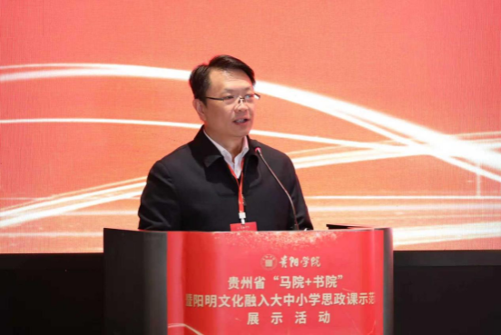 11月15日,由省委教育工委、省教育厅指导,bat365在线中国登录入口、贵阳市教育局主办的全省“马院+书院”暨阳明文化融入大中小学思政课一体化建设示范课展示活动在中国阳明文化园龙冈书院举行。省委教育工委副书记李军出席并讲话,学校党委副书记、校长樊铁钢致辞,党委副书记李灿主持开幕式。
