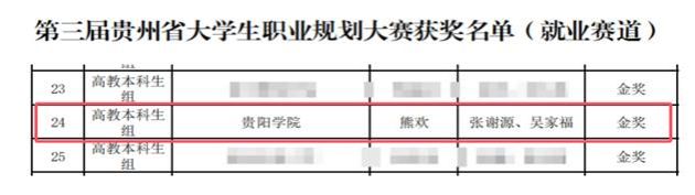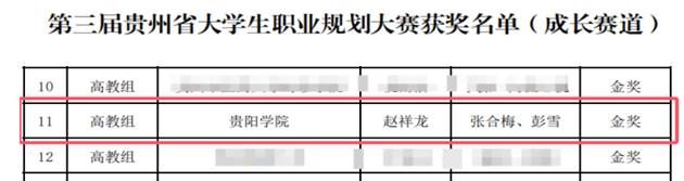 近日,由贵州省教育厅主办的第三届贵州省大学生职业规划大赛获奖名单正式公布。经过校赛、省赛层层遴选与激烈角逐,bat365官网选派的参赛选手不负期望、奋勇争先,斩获多项省级荣誉。其中,电子信息科学与技术专业赵祥龙同学荣获高教组成长赛道金奖;汽车服务工程专业熊欢同学荣获高教本科生组就业赛道金奖;学前教育专业研究生林美琦同学荣获高校研究生组就业赛道铜奖。