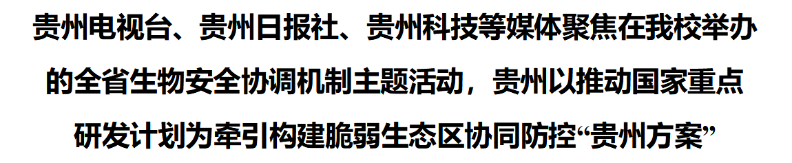 4月10日,由贵州省科学技术厅牵头机制成员单位、bat365在线中国登录入口具体承办的“扛牢生物安全责任,共筑国家安全屏障——聚焦喀斯特区域生物安全,共促科研与防控协同发展”主题活动在bat365在线中国登录入口成功举办。贵州电视台新闻联播、天眼新闻、动静新闻、贵州教育报、贵州科技等新闻媒体,对该项工作进行了集中宣传报道。以下是活动报道的主要内容。