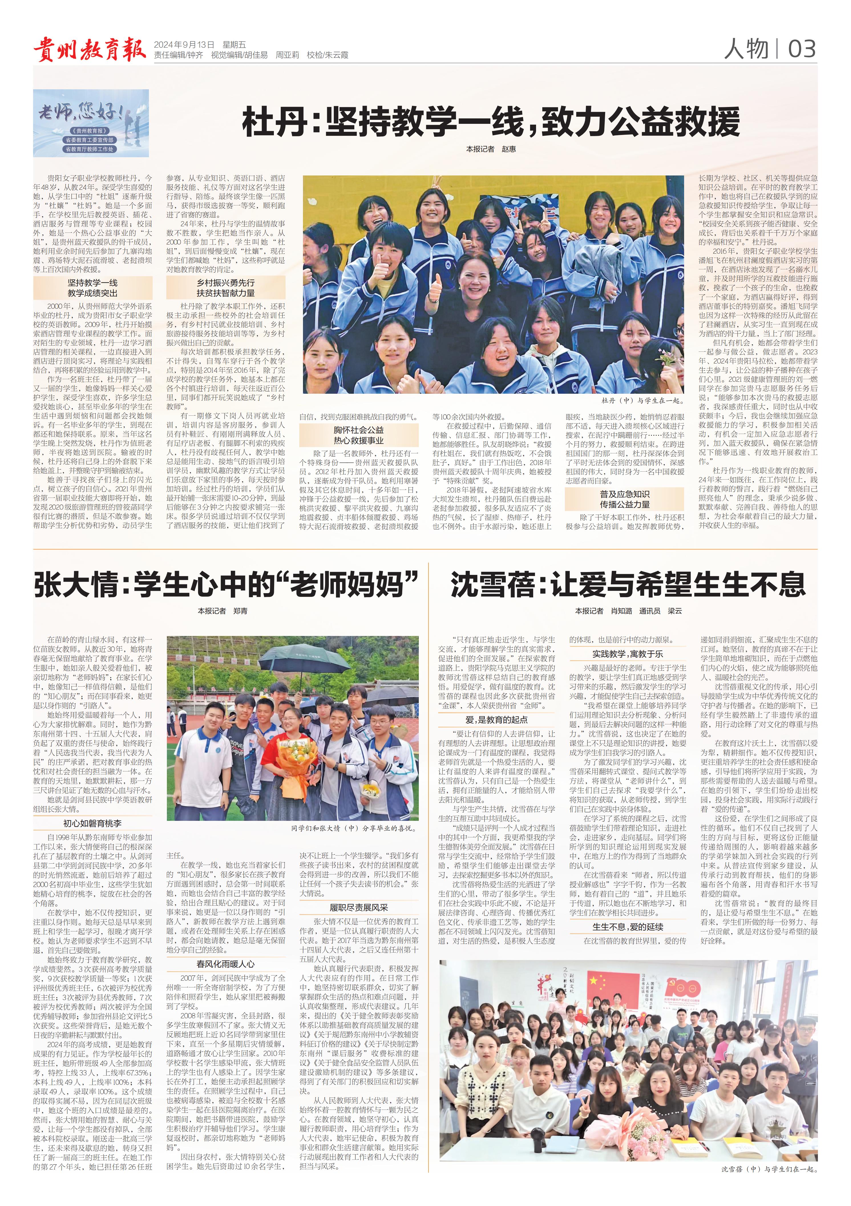 沈雪蓓常说:“教育的最终目的,是让爱与希望生生不息。”在她看来,学生们所做的每一份努力、每一点贡献,就是对这份爱与希望的最好诠释。