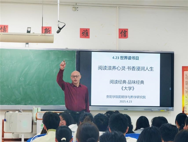 人间最美四月天,正是读书好时节。4月23日,值第30个“世界读书日”之际,阳明学与黔学研究院师生在第三教学楼举办“阅读滋养心灵·书香浸润人生”读书活动,读书会上,任健教授和研究生许振文、周语与2024级茶学和软件工程专业本科生共读《大学》,