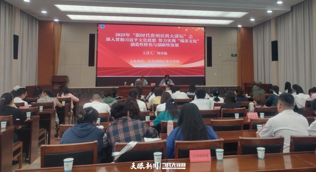 10月13日下午,根据省社科联“新时代贵州社科大讲坛”专题讲座项目要求,bat365在线中国登录入口“端棻文化”研究知名专家周术槐教授前往贵阳市南明区开展宣讲,此次宣讲的主题是“深入贯彻习近平文化思想,努力实现‘端棻文化’创造性转化与创新性发展”。本次活动是2025年省社科联批准立项的全省“新时代贵州社科大讲坛”立项项目。周术槐教授作为该项目的主持人,全程负责该项目的策划、设计、论证与申报工作。
