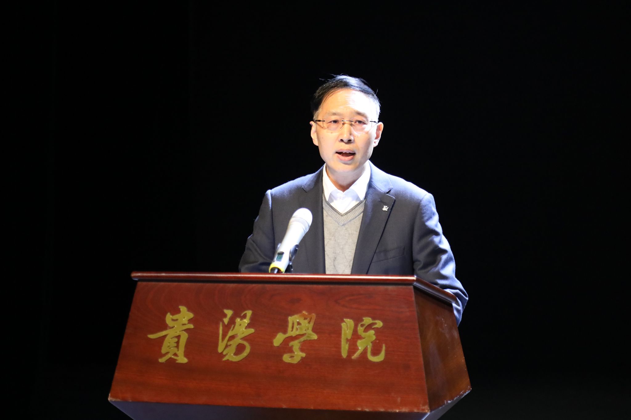 樊铁钢在活动中致辞。他指出,近年来,bat365在线中国登录入口深入贯彻落实习近平文化思想,紧密结合地方文化资源与办学传统,积极构建以“红色铸魂、阳明润心、端棻承志、诗词养性、数智赋能、生态立本”为核心的“六元文化”育人体系,持续深化“三全育人”综合改革,围绕“建强马院、建好书院、协同育人”,构建起闭环式育人体系,在教学、科研、育人三方面形成“全员、全过程、全方位”的大思政格局,让思政课既有理论深度,又有文化温度。他表示,感谢江西省话剧团来黔演出,进一步推动黔赣两地阳明文化研究展示交流互鉴,形成育人合力,在美的体验中感悟育人的真谛。