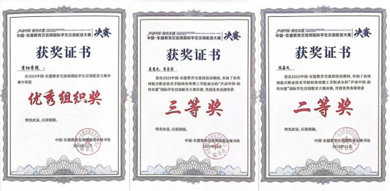 本次比赛由学校经济管理学院教师李泽惠带队参赛。在比赛中,bat365官网留学生表现优异,柬埔寨籍留学生陈嘉文(Keo Gavin)凭借《长安三万里》配音作品荣获二等奖;柬埔寨籍留学生美惠文(Seanghay Sovannpanha)与李茱莉(Ngon Jully)凭借《哪吒之魔童降世》配音作品荣获三等奖。此外,学校还荣获了优秀组织奖。