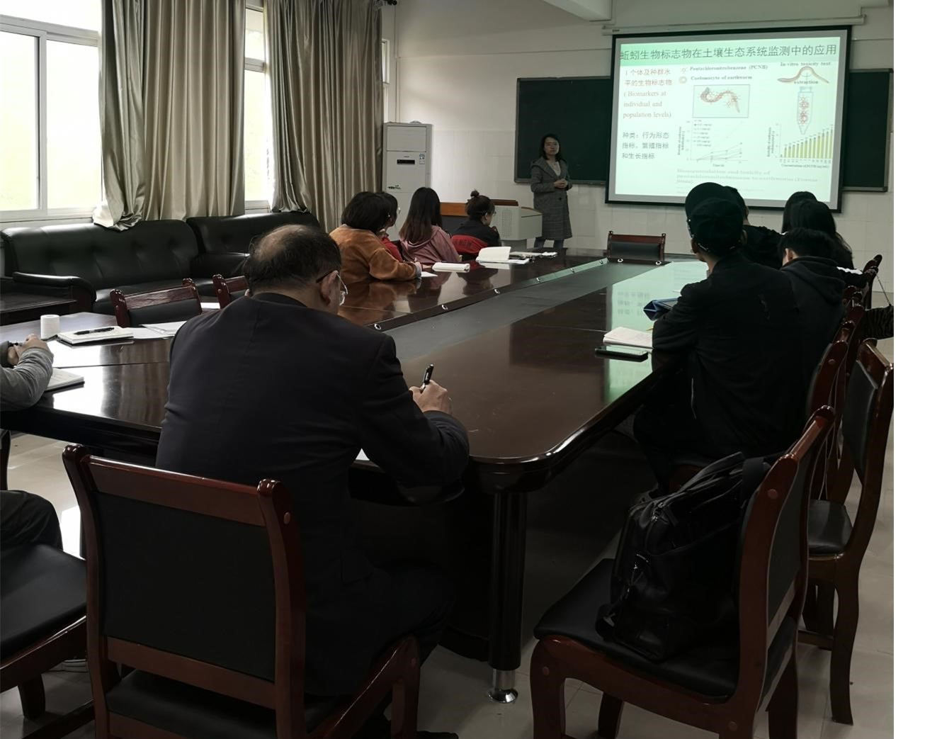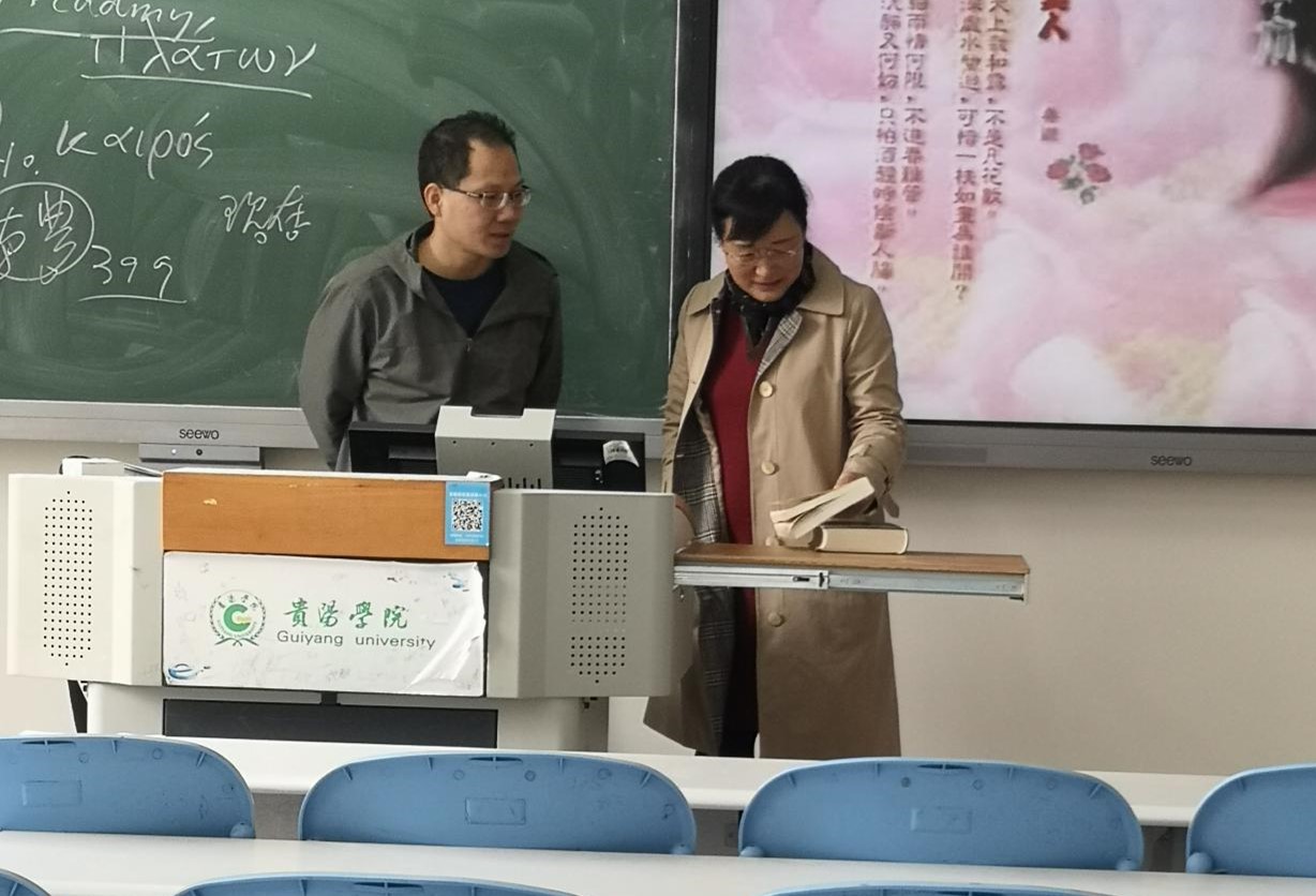 许督导来到生物与环境工程学院,先后听了叶挺老师的课程《环境生物监测与安全性评价》以及文双喜老师的课程《环境功能材料研究进展》。谢督导进入阳明学与黔学研究院,听了吴光行老师的课程《西方哲学史专题》,课后两位督导对各位任课老师的课堂讲课及学生的反映情况进行了评价,肯定了研究生课堂形式多样,让同学们更多的参与到课堂中来,激发其自主能动性,学习效果会更好,同时两位督导与任课教师就课堂教学方面的经验和建议进行了交流。