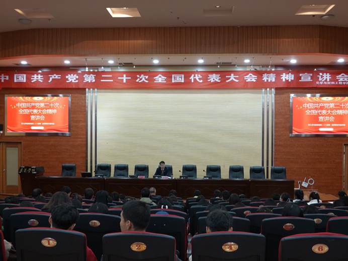 11月18日下午,bat365官网党委委员、副校长李灿在图书馆报告厅向化学与材料工程学院全体教师及学生代表宣讲中国共产党第二十次全国代表大会精神。