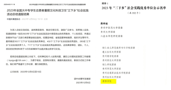加强党建带团建,校团委2020年获“贵州省五四红旗团委”称号,2023年被团中央评为全国“三下乡”社会实践优秀单位,连续四年获贵州省“三下乡”优秀组织单位称号,实现党团联创共建提档升级,党团组织凝聚力、战斗力持续提升。