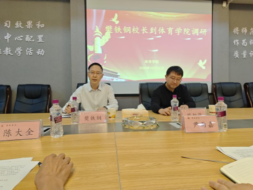 2025年10月16日,校长樊铁钢到体育学院开展调研,校长办公室主任曾旭葵陪同并主持召开座谈会。体育学院领导班子成员、科级干部、教研室主任、教师代表等参加调研座谈。