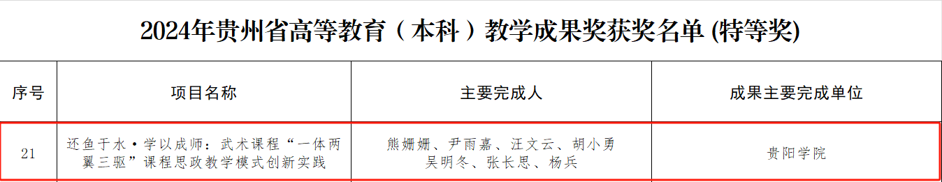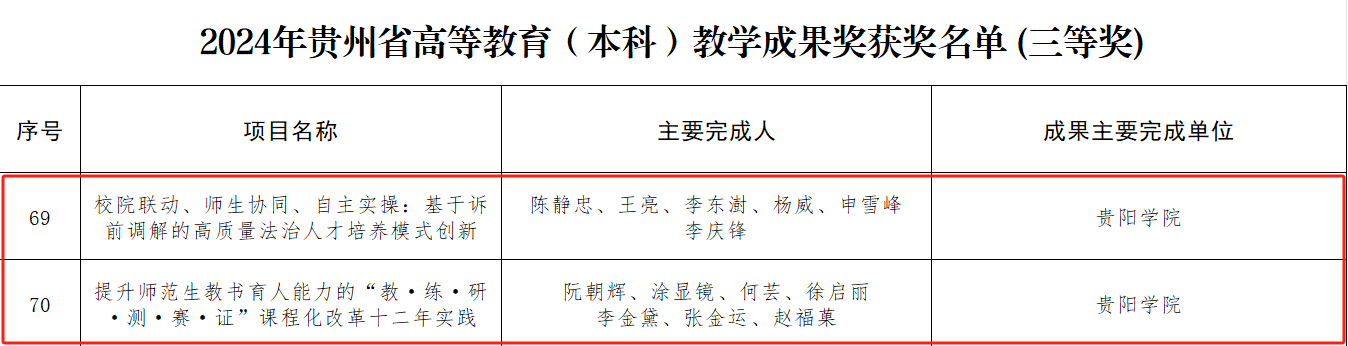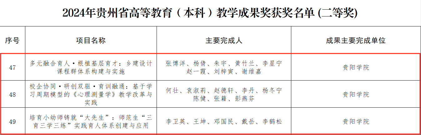 2025年2月,省教育厅发布《省教育厅关于公布2024年贵州省高等教育省级教学成果奖获奖名单的通知》,bat365官网本科教育教学成果获特等奖1项、二等奖3项、三等奖2项,研究生教育教学成果获二等奖2项。