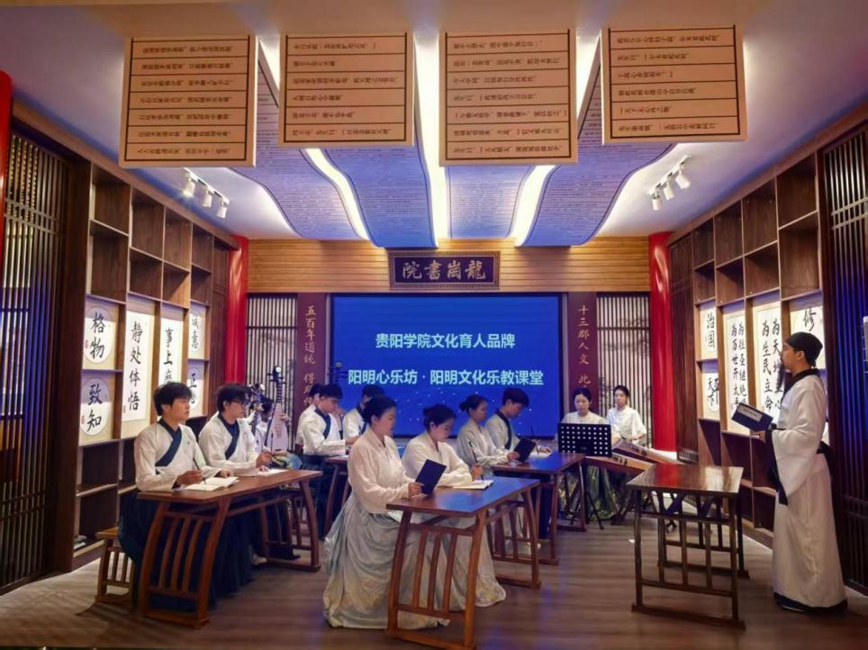 bat365在线中国登录入口持续探索阳明文化的转化运用,依托阳明学与黔学研究院,打造了“鱼梁讲会”“知行论坛”“青年学术沙龙”“阳明讲坛”“知行国学社”等一系列文化品牌活动,形成了“理论铸魂、文化润心、实践育人”的立体化路径。在“马院+书院”协同育人模式下,马克思主义学院与阳明学与黔学研究院紧密合作,将中华优秀传统文化融入思政课教学。师生们走出校园,坚持在暑期“三下乡”活动中将文化带到乡村振兴一线;学校还成立了“阳明心乐坊”,把阳明诗歌改编成音乐舞蹈作品,用艺术形式演绎“教条示龙场诸生”。这些活动让阳明文化从“静态展览”变成“动态体验”,从“学术研究”走向“审美教育”。