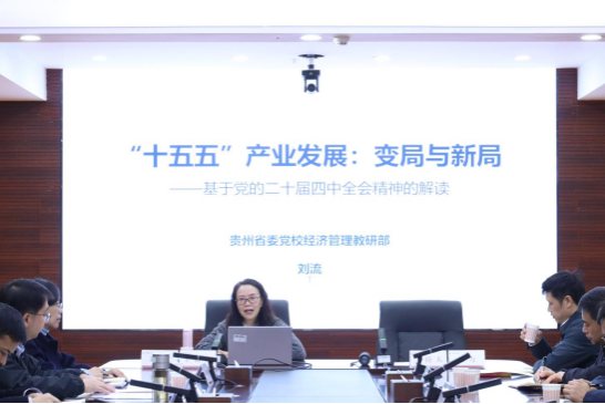 12月4日,bat365在线中国登录入口特邀省委党校副校长邓献辉教授、经济管理教研部主任刘流教授在九思楼八楼会议室分别作了题为“确保基本实现社会主义现代化取得决定性进展—深入学习领会党的二十届四中全会精神”“‘十五五’产业发展:变局与新局——基于党的二十届四中全会精神解读”专题讲座。讲座由校党委副书记马力主持,全校副处级以上干部参加。